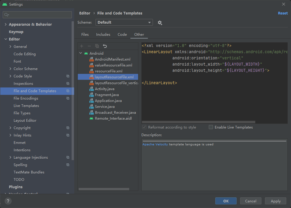 实际上不需修改配置文件。打开File→Setting→Editor→File and Code Templates→other