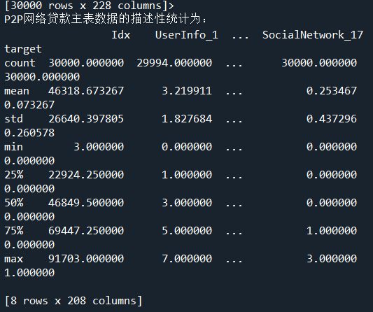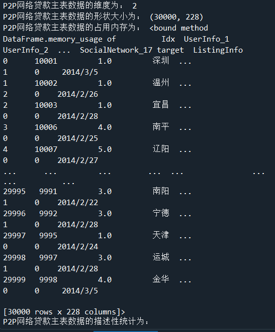 二、读取并查看P2P网络贷款数据主表的基本信息(1题10分,共10分)