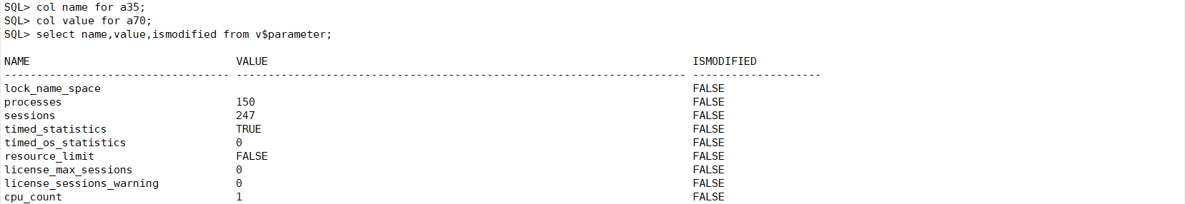 可以通过v$parameter查询name,value,ismodified来确定默认值是否被修改过