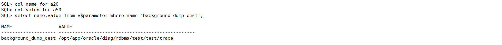 在vSparameter 视图中查看当前实例的警告文件的路径,代码及运行结果如下。