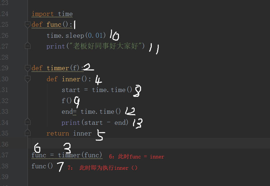 #原函数func import time def new(func): def inner(): start = time.time() func() end = time.time()