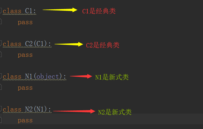 经典类和新式类,从字面上可以看出一个老一个新,新的必然包含了更多的功能,也是之后推荐的写法,从写法上区分的话,如果当前类或者父类继承了object类,那么该类便是新式类,否则便是经典类。