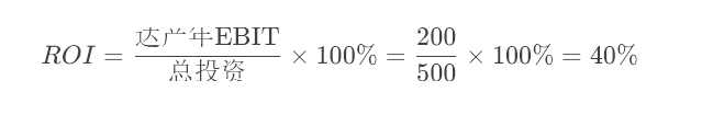 基准投资收益率为15%,项目ROI为40%,明显高于基准值,因此项目可行。