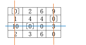 6.在0对应的行列中 只选一个0元素对应的值就是最小值。