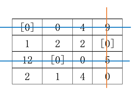 找出独立零元素(不在同行同列的零),并用直线覆盖全部零元素;
