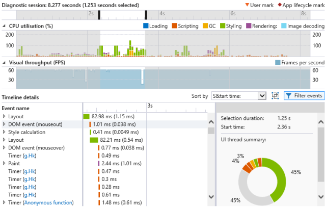 在 IE 中这个功能被放置在了UI Responsiveness 面板中: