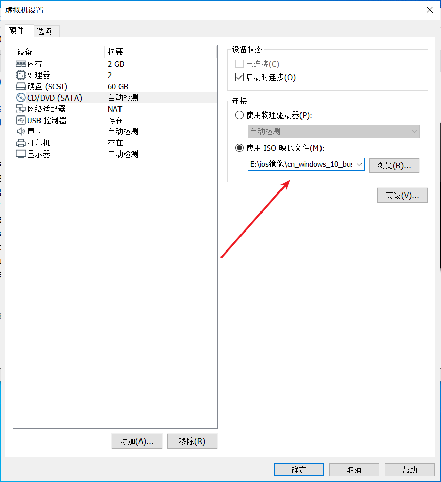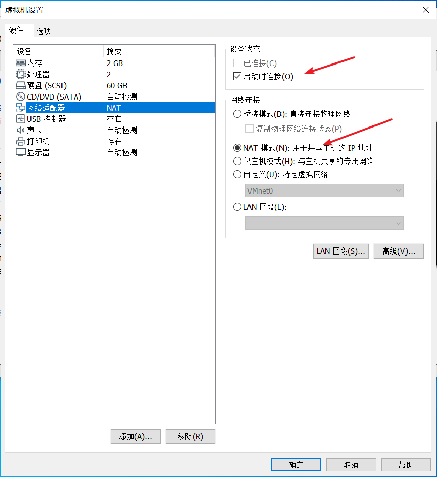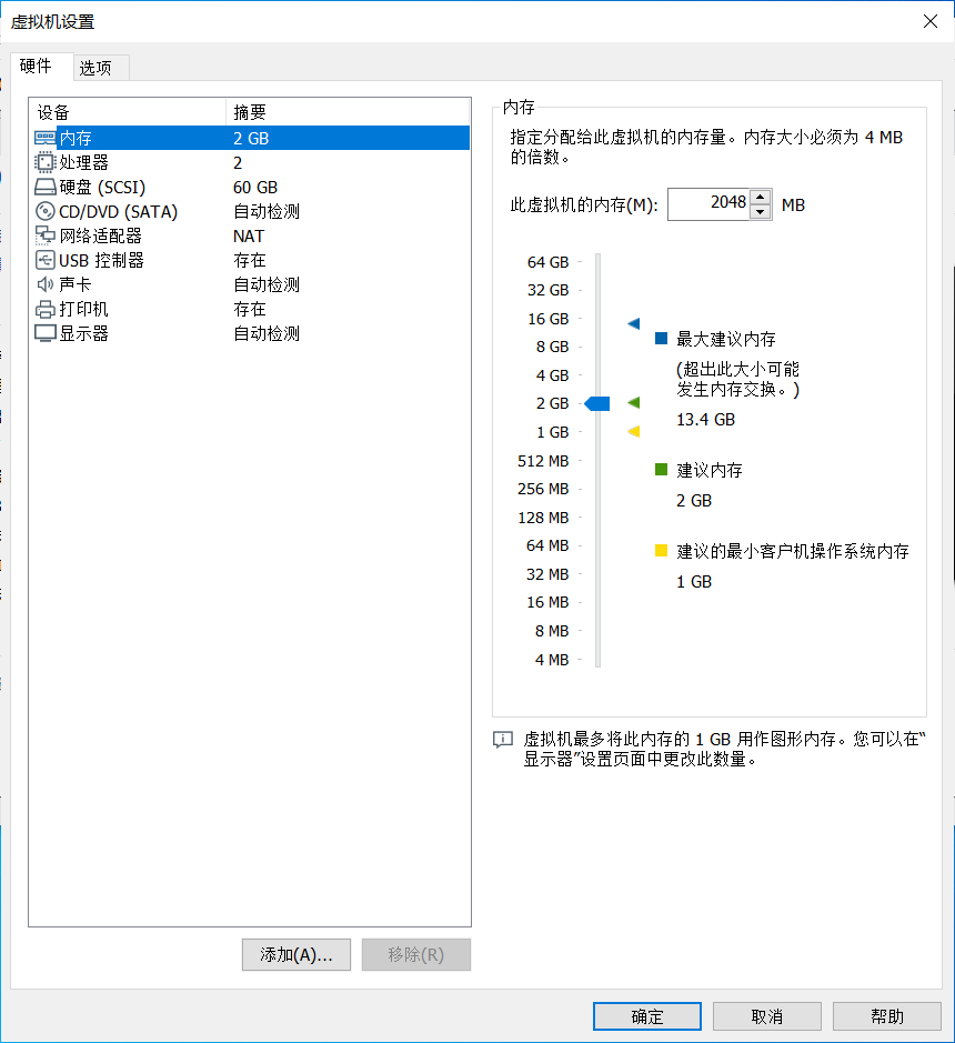 9.内存建议2G,处理器1-2个,网络选择 NAT,最后点击光驱(根据个人的机器来调整)