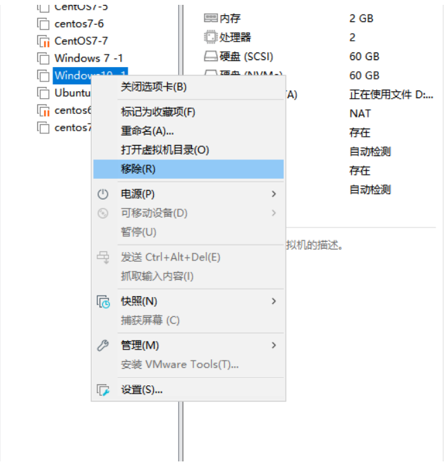 12.移除虚拟机(注意文件没有移除,需要去安装目录自行删除!!!)