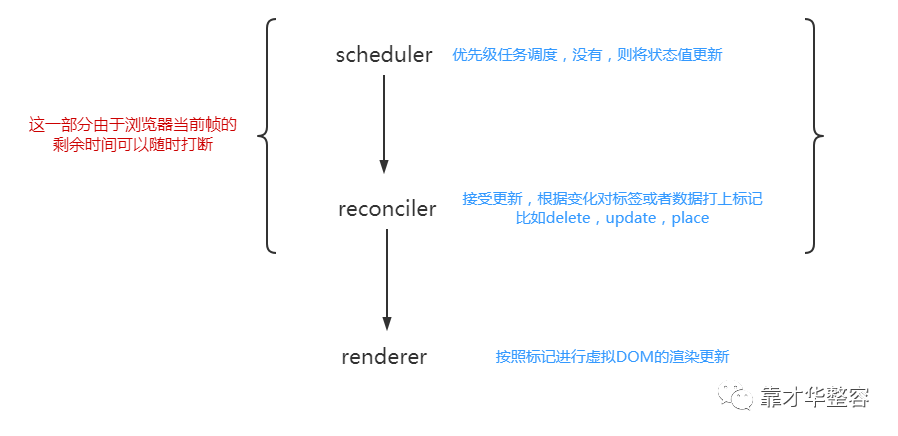 其实是在原有的基础上添加了Scheduler,并升级了Reconciler,采用了Fiber架构: