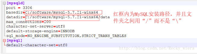 [mysqld] character_set_server = utf8 # MySQL安装目录 basedir = C:/Program Files/mysql-5.7.25-winx64 # Linux 和 Unix 中不需要配置 datadir = C:/Program Files/mysql-5.7.25-winx64/data # Linux 和 Unix 中不需要配置