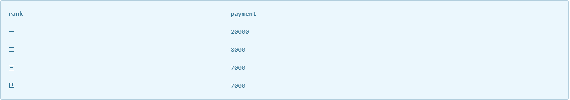 insert into salary values('一',20000),('二',8000),('三',7000),('四',7000);