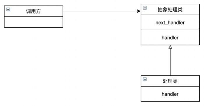 处理类执行前根据先决条件判断自身的 handler 是否能够处理,如果不能则交给 next_handler,也就是责任链的下一个节点。上面的用责任链实现为:
