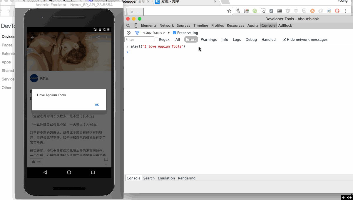 遇到这种情况,DDMS和Android uiautomatorviewer 毫无用武之地,这个时候就需换别的工具。对于Android来说,可以使用chrome自带的dev tools;对于iOS来说,也可以使用safari自带的工具来进行remote debugging。