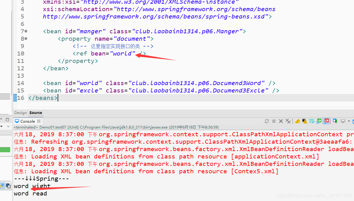 <bean id="world" class="club.laobainb1314.p06.Documend3Word" />