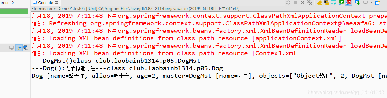 例子:狗与主人 涉及到基本类型、String类型、自定义类型、数组类型、三种集合的setter赋值