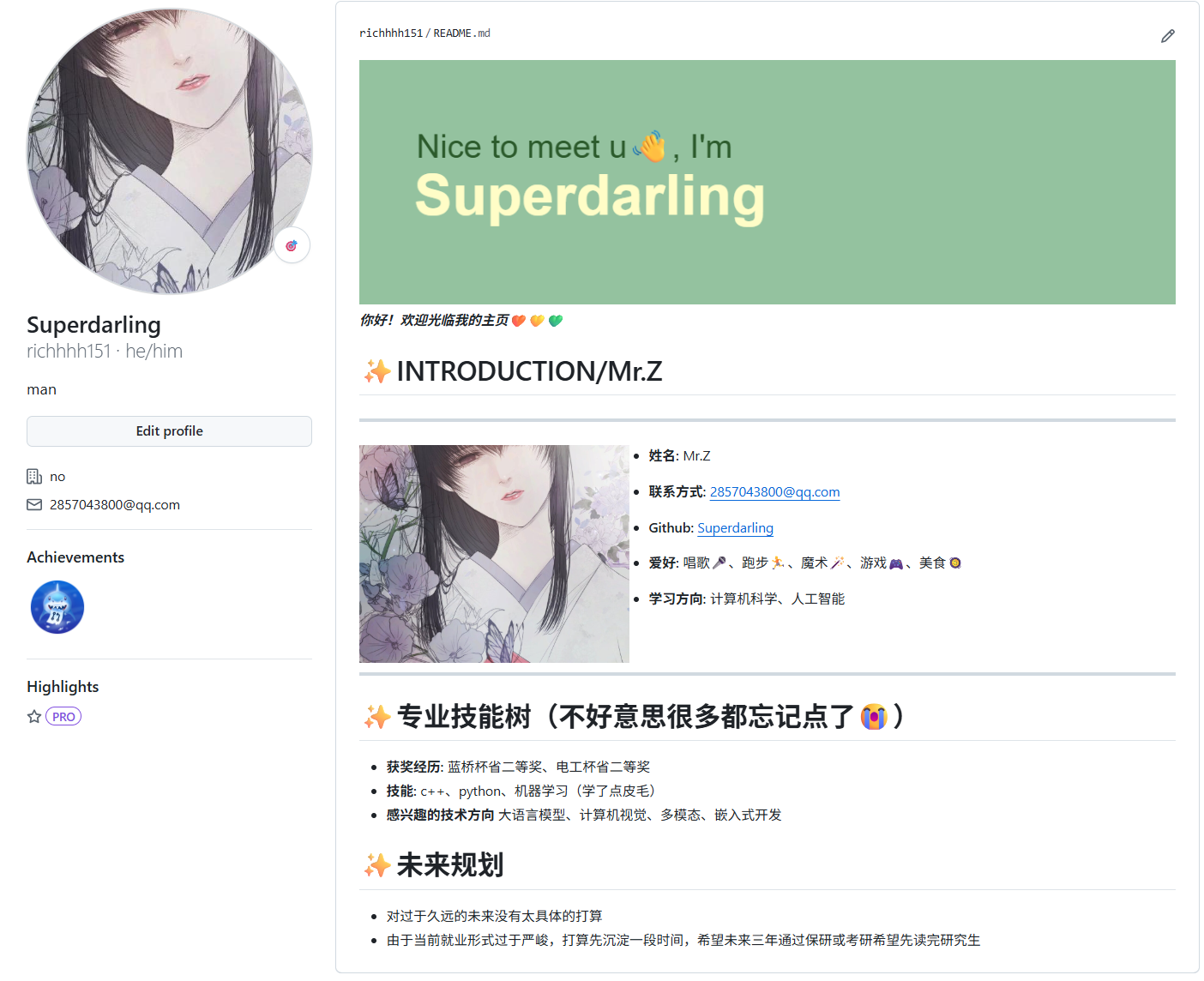 具备一定工程基础与AI理论背景,目前掌握Git/Linux开发工具链、数据结构与算法等知识,能使用C++、Python