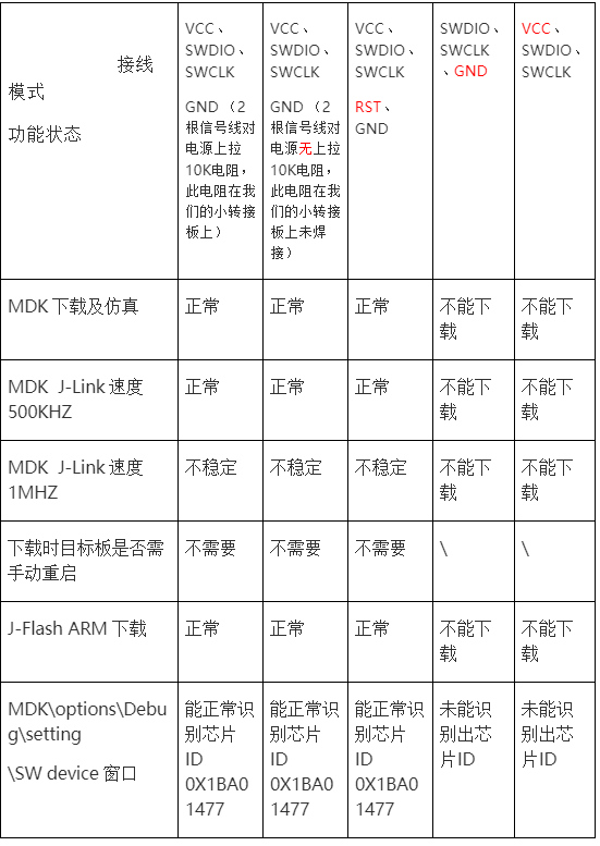 3.JLINKV8硬件接口:VCC,GND,RST,SWDIO,SWDCLK(附JLINKV8实际测试结果)