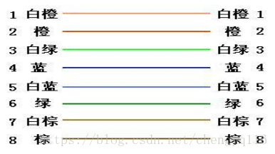 直通线:网线两端水晶头做法相同,都是TIA/EIA-568B标准,或都是TIA/EIA-568A标准.