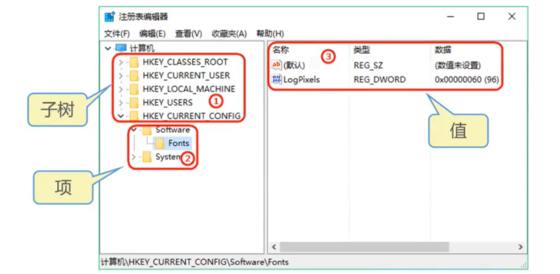 HKEY_LOCAL_MACHINE:记录关于本地计算机系统的信息,包括硬件和操作系统数据
