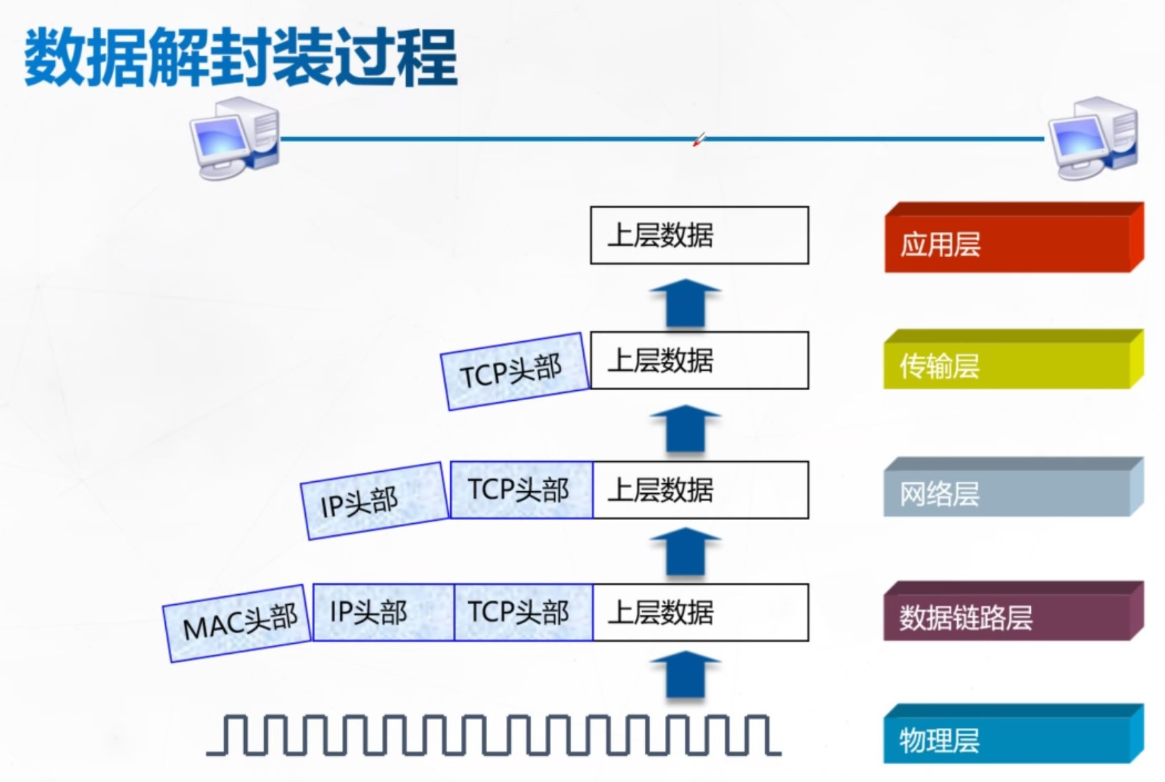 网络层:查看IP地址,地址是自己,就拆掉IP地址头部继续传输,不是自己就丢弃数据