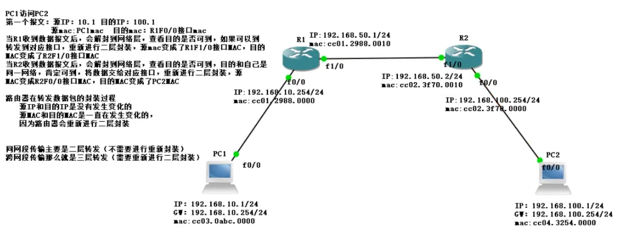 一个帧到到达路由,路由器首先检查目标MAC地址是否自己,如果不是自己则丢弃,如果是则解封装,并将IP包送到路由器内部