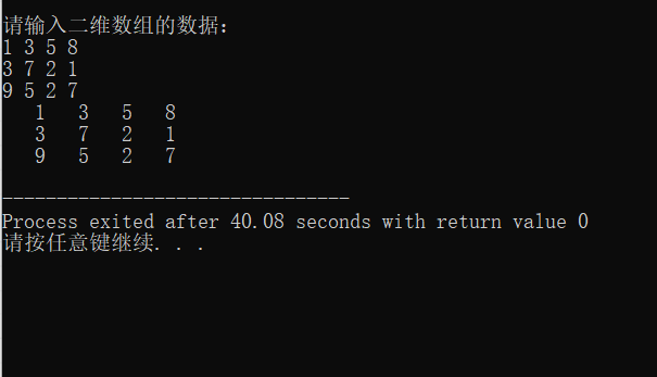 printf("%d,%d,%d\n",a[i][k],i,k);