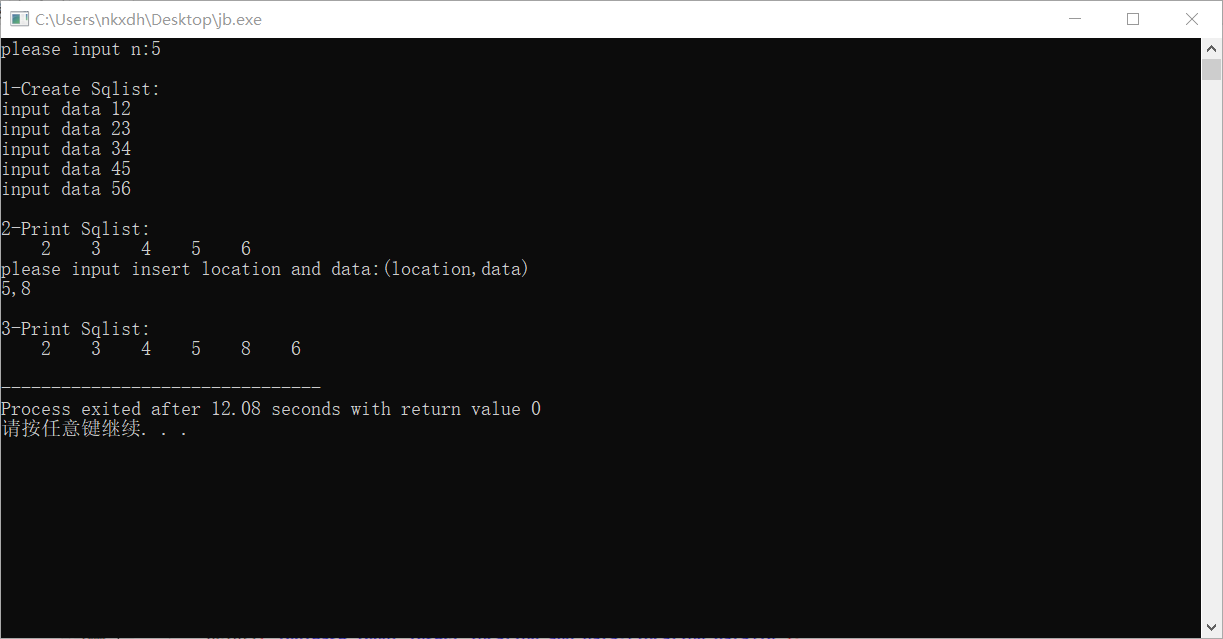 4.为第3题补充插入功能函数和删除功能函数。并在主函数中补充代码验证算法的正确性。
