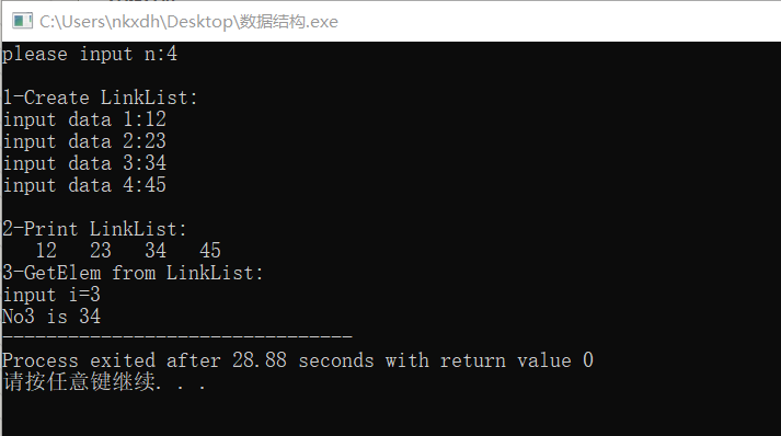 printf("\n3-GetElem from LinkList:\n");