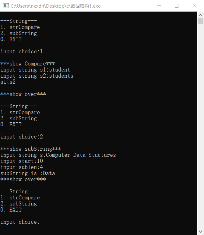 printf("\n***show subString***\n");