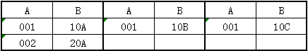 表:TESTA,TESTB,TESTC,各有A,B两列。