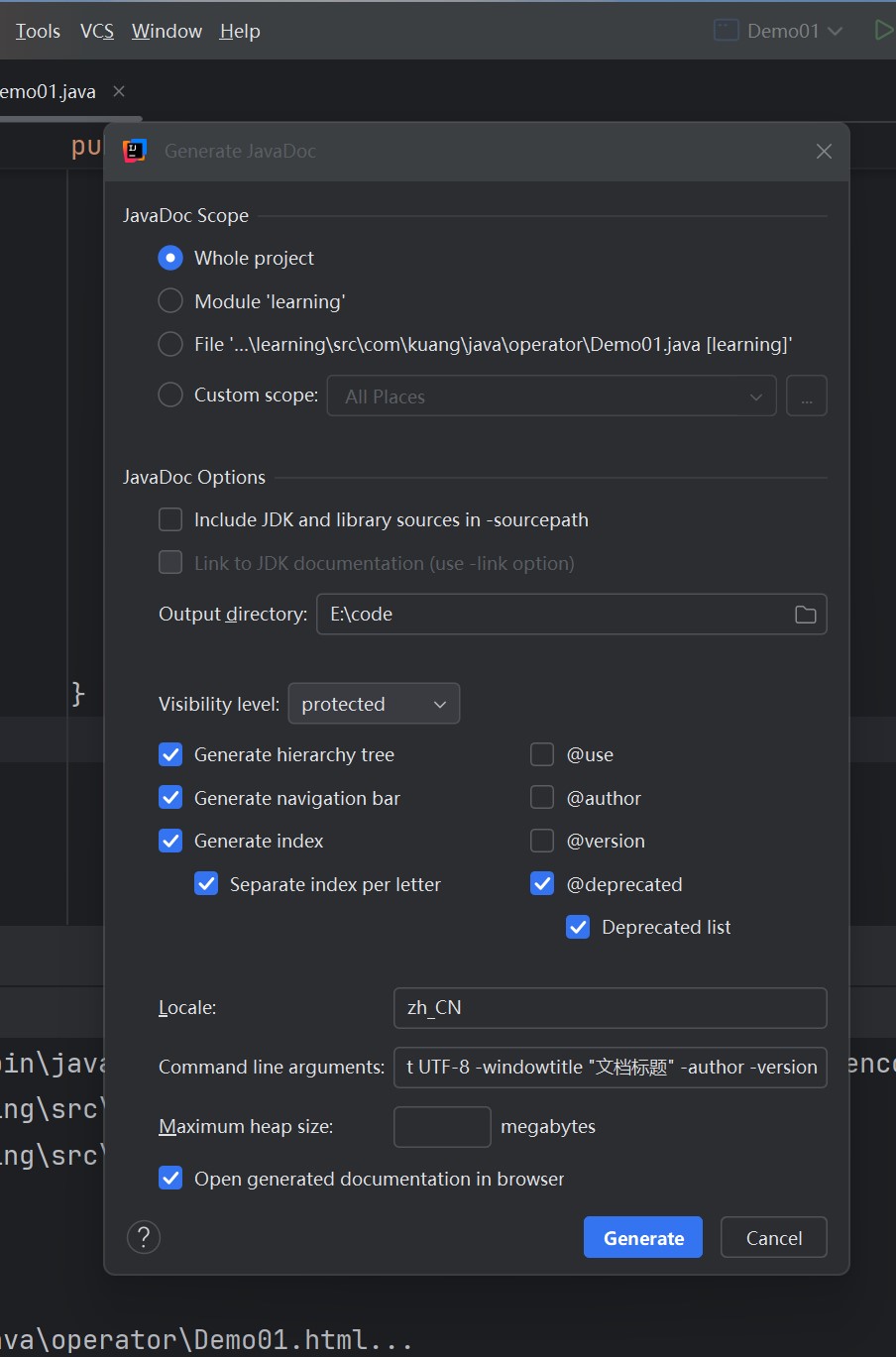 作业:学会查找使用IDEA生成JavaDoc文档!
