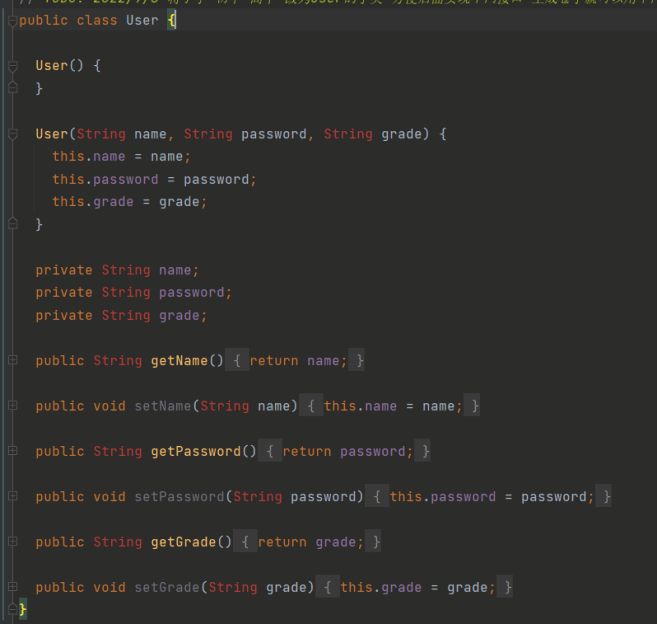 以User为基类,小学、初中、高中为子类,便于实现不同接口。