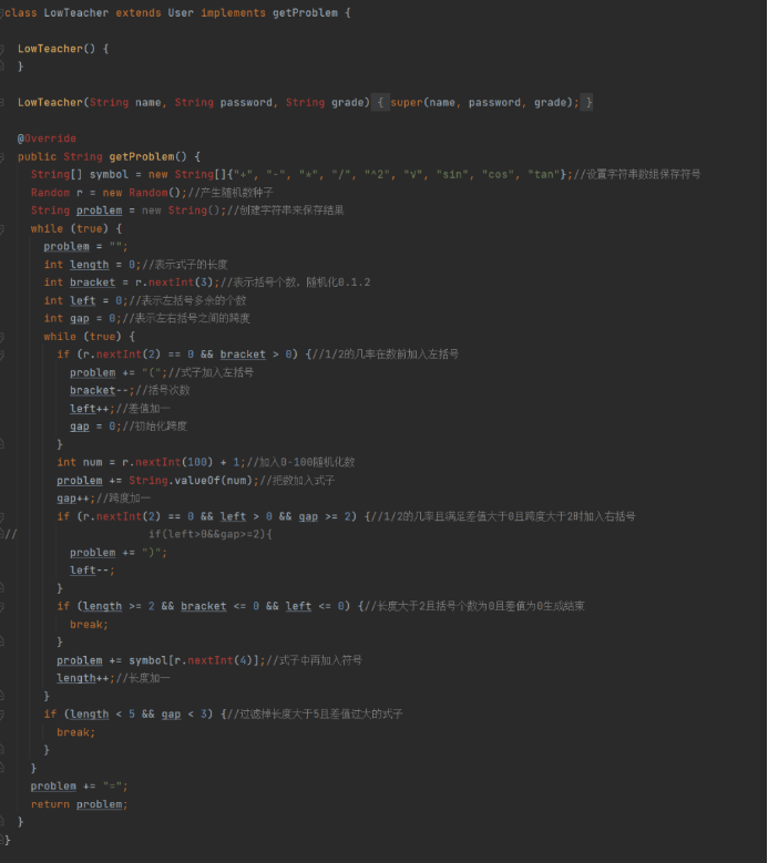 试卷生成函数以数组记录运算符,分别设置变量记录题目长度、题目括号数、左括号数及左右括号之间跨度。