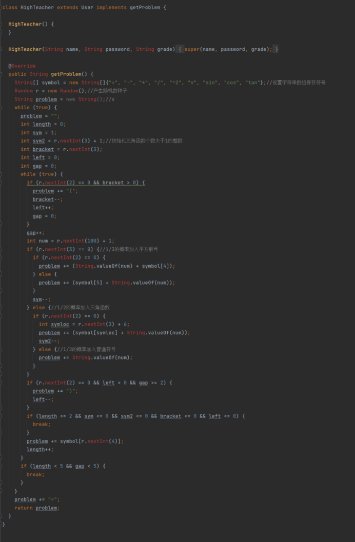 生成高中题目:将生成小学题目中添加操作数的比分高位给操作数添加sin、cos、tan(1/2概率)后加入题目。