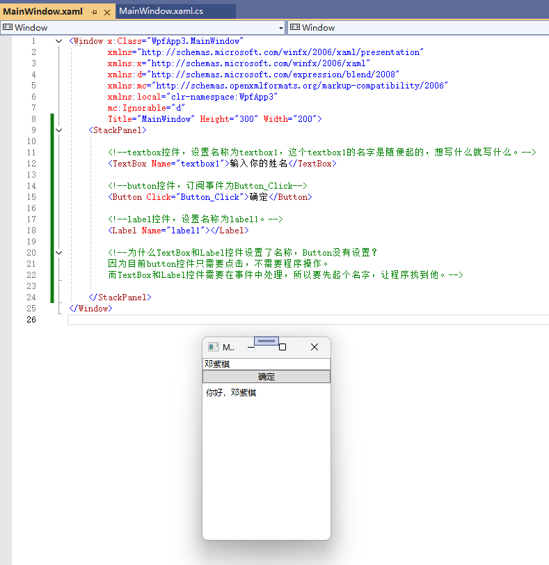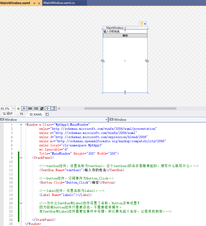 而TextBox和Label控件需要在事件中处理,所以要先起个名字,让程序找到他。-->