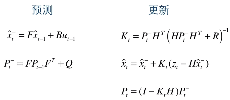 K: 卡尔曼系数 滤波增益阵,它首先权衡预测状态协方差矩阵 P 与 观测值矩阵 R的大小,以此来觉得更倾向于相信预测模型还是详细观测模型。