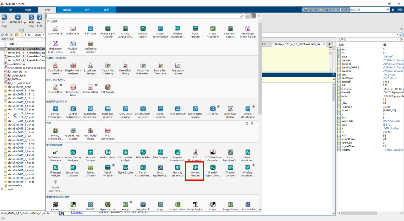2. 在matlab APP中打开 wavelet Analyer 工具;