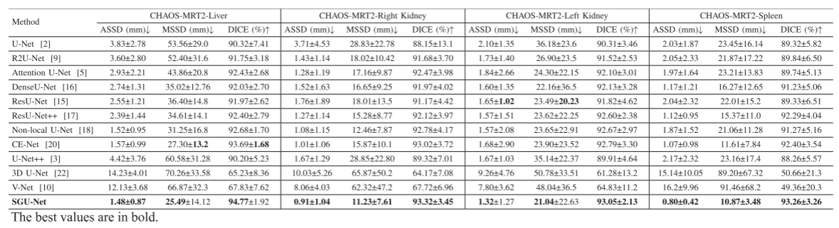 论文引用信息:T. Lei, R. Sun, X. Du, H. Fu, C. Zhang and A. K. Nandi, "SGU-Net: Shape-Guided Ultralight Network for Abdominal Image Segmentation," in IEEE Journal of Biomedical and Health Informatics, vol. 27, no. 3, pp. 1431-1442, March 2023, doi: 10.1109/JBHI.2023.3238183.