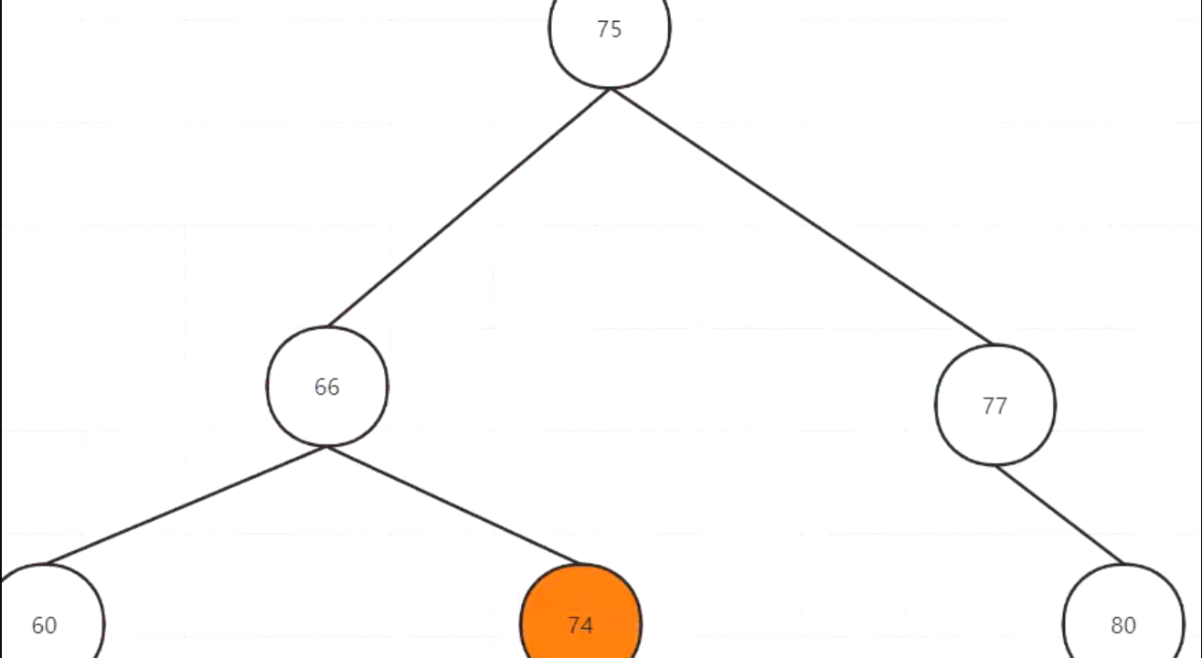 右孩子(77)的左子树(72)变成该节点(66)的右结点。
