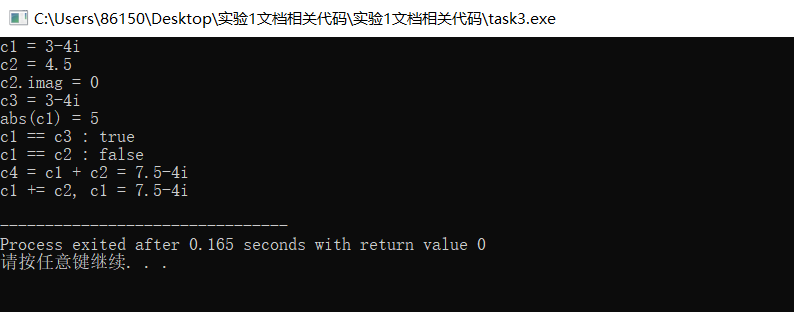 Complex c1(3, -4);