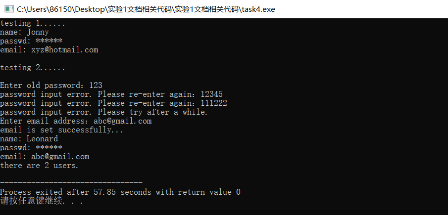 cout<<"password input error. Please re-enter again:";