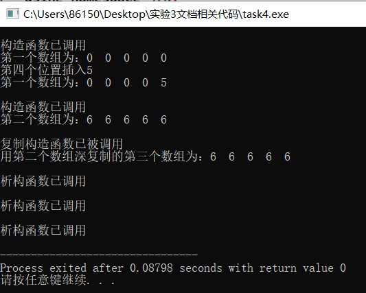 cout<<"用第二个数组深复制的第三个数组为:";