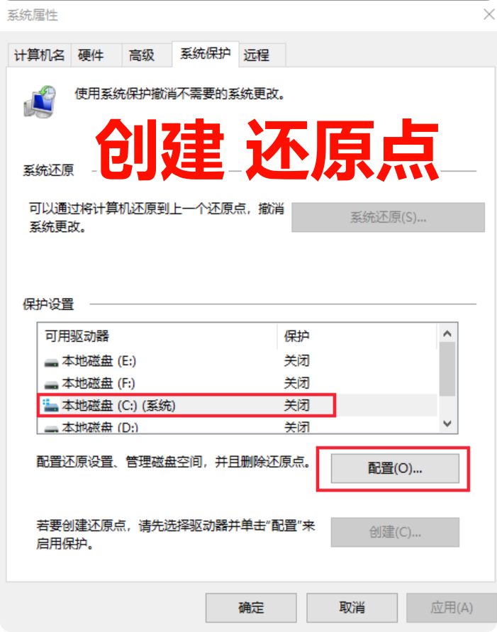 | 启用系统保护 | 启用 | 启用 | 启用 |