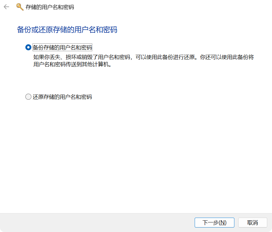credwiz.exe工具进行备份和恢复,但凭据管理器的加密功能和操作系统的整体安全措施使得凭据的存储和迁移变得更加安全。