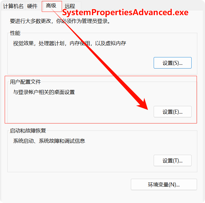 命令 打开 SystemPropertiesAdvanced.exe