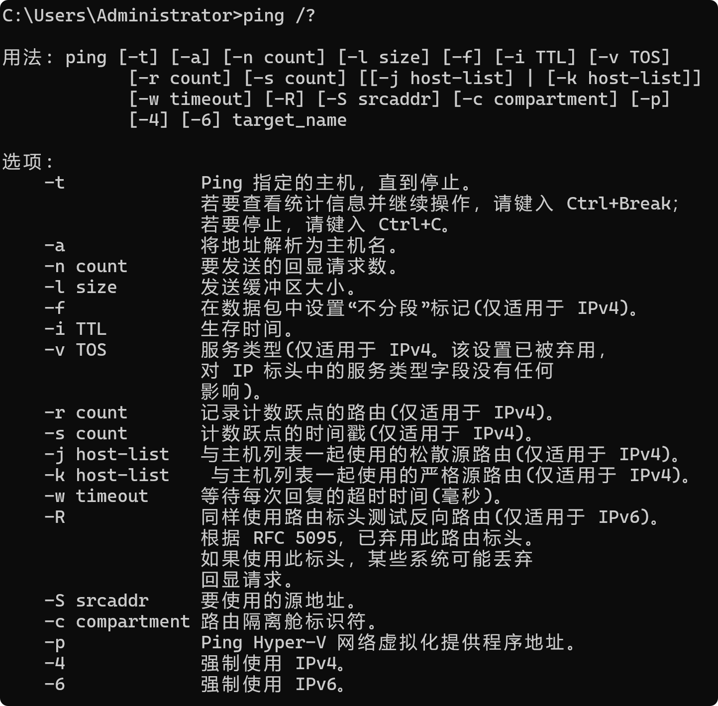 | 获取 IPv6 地址信息 | 查看目标主机的 IPv6 地址信息并进行连接性测试。 | ping -6 -n ipv6.baidu.com |