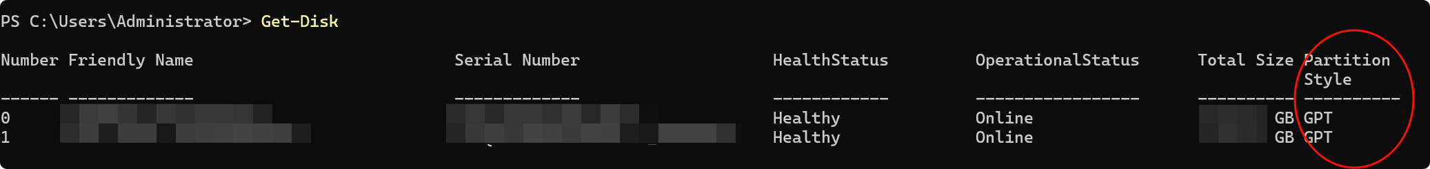 为了确保准确性,建议结合 PowerShell 或 Diskpart 来验证 GPT 分区,而注册表只用于辅助分析。因为注册表并没有直接明确标识 GPT 或 MBR。以下是一个 PowerShell 示例,用于直接查询磁盘的分区表类型: