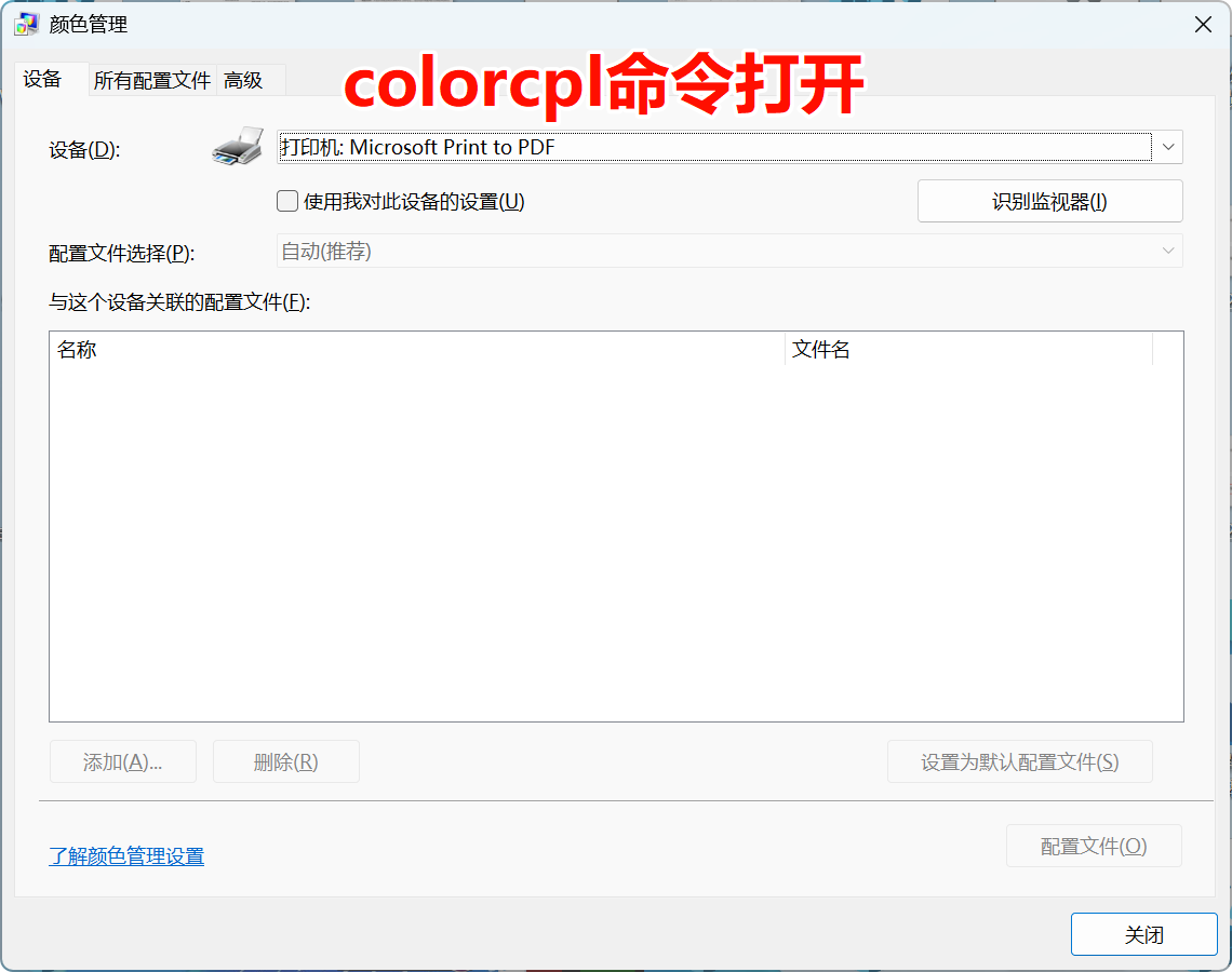 - 点击 “颜色管理” 按钮,进入 ICC配置文件管理。