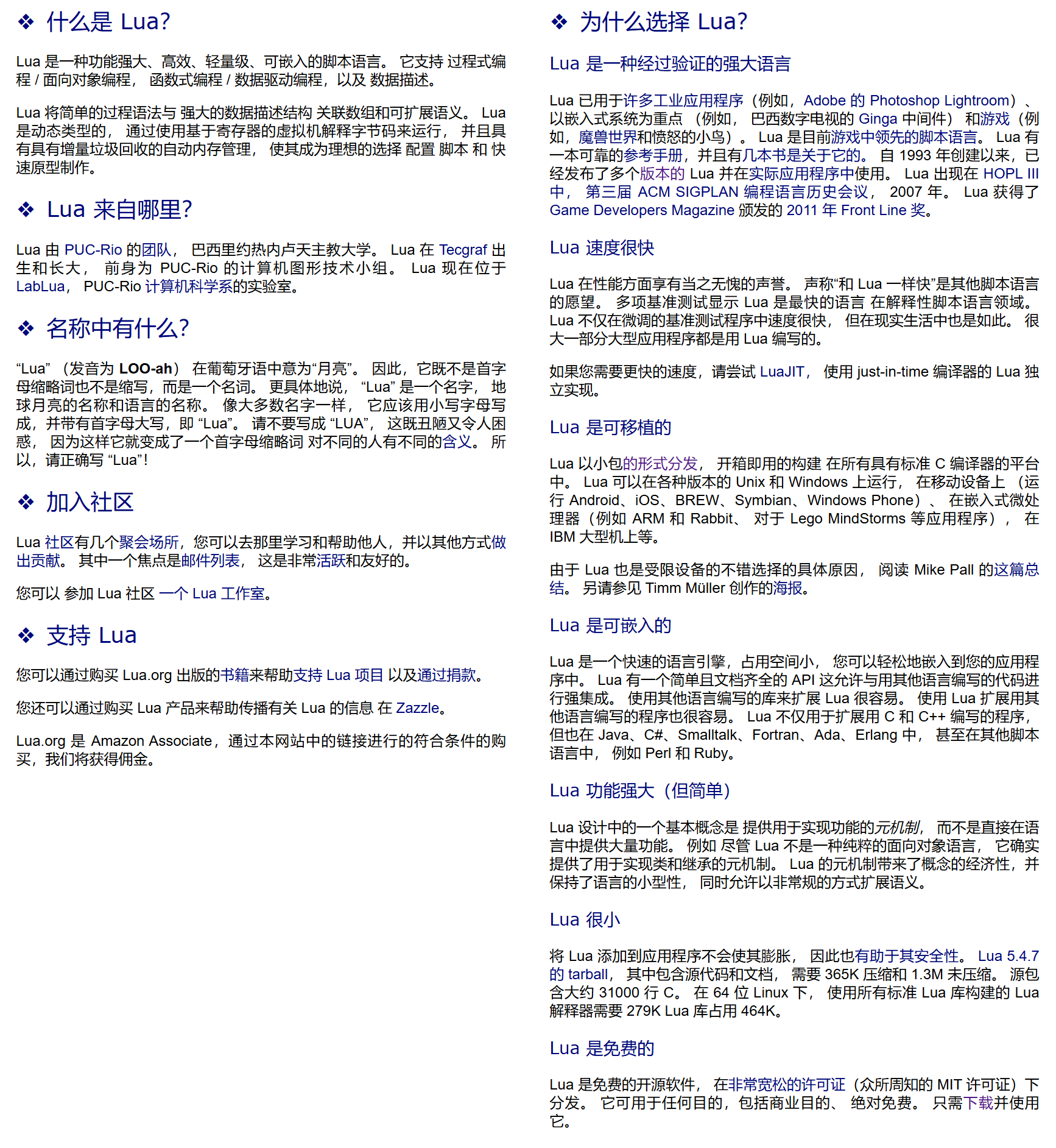 Lua的发展历程体现了它作为一个轻量级、高效、灵活的脚本语言,适应了不同领域的需求,并不断进行性能优化和功能扩展。